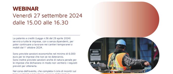 WEBINAR PATENTE A CREDITI 27 SETTEMBRE 2024 ORE 15.00